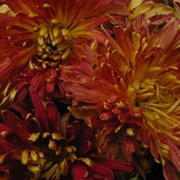 Куст высотой 60 см. Соцветия диаметром 12 см., двухцветные, красные на золотой подкладке, полумахровые. Начало цветения — сентябрь.